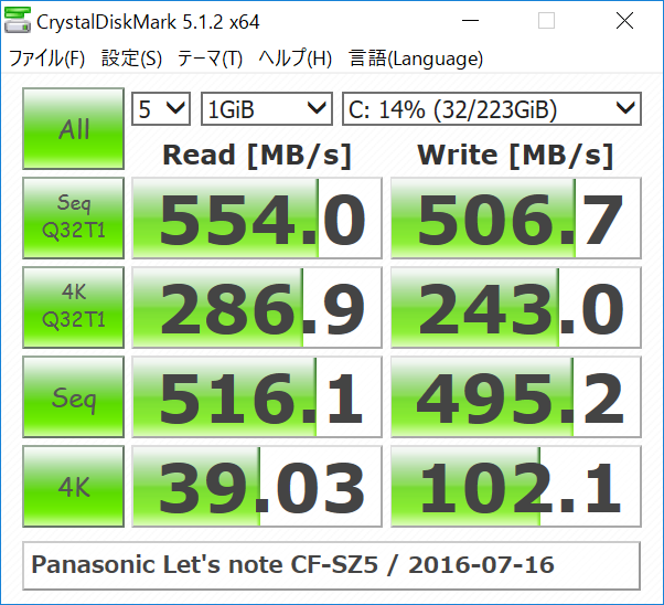 [ICT] Panasonic Let’s note CF-SZ5 / SSD 256GB ベンチマーク
