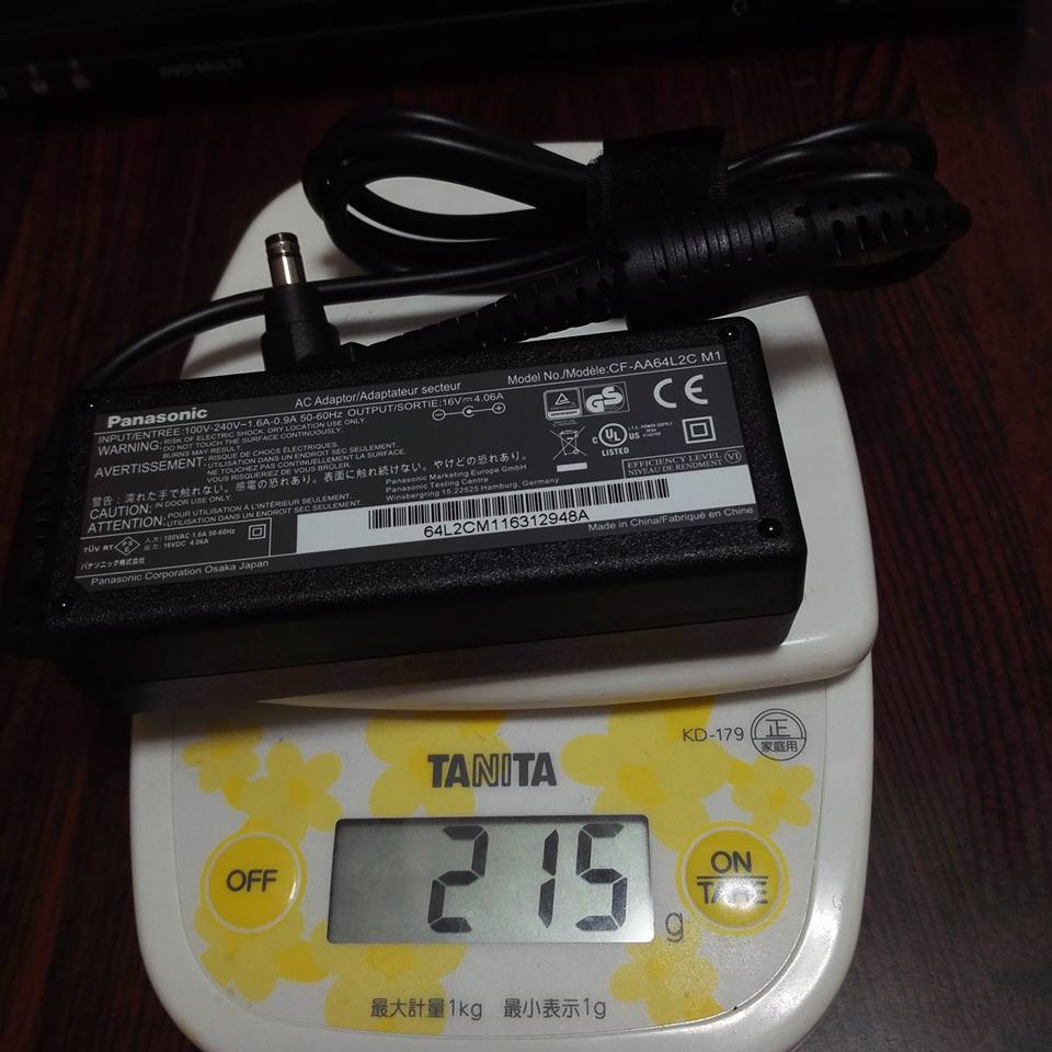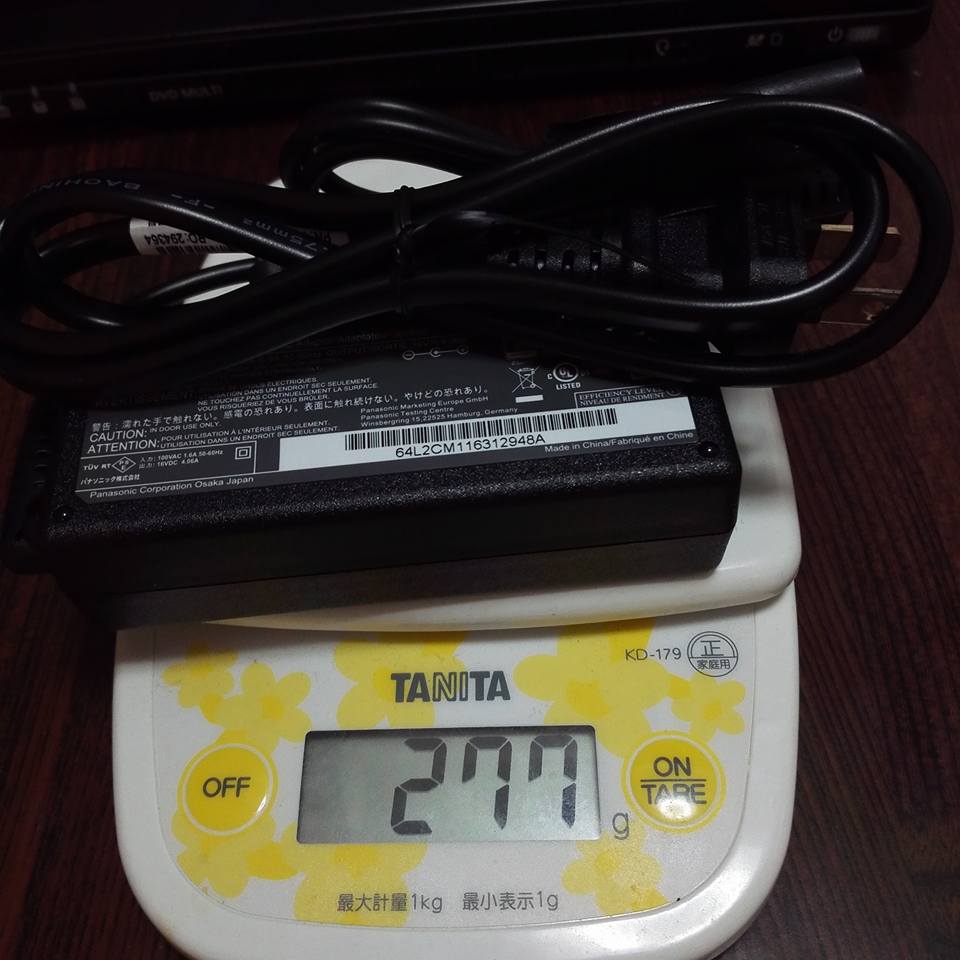 本体重量(DVDマルチドライブ込み) 704g    CF-SZ5 バッテリー 315g   ACアダプタ(Let’s note は昔からコンパクト) 215g       ACアダプタに ACコードを付けたら 277g      念のため、Core i7 モデルということを。