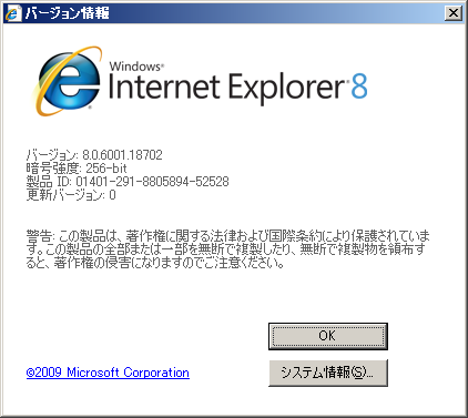 ◆もう更新プログラムは無いぞ。IE も 8.0 に更新済みだぞ。斉藤さんだぞ!