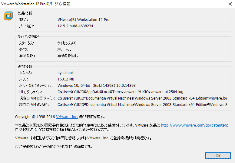 AWS に 2003 イメージが無かったので、仕方なく イメージファイルを MSDN Subscription で #1, #2 CD ISO をダウンロードしてきて、VMware Workstation 12 Pro (ホスト:Windows 10 Education 64bit / RAM 16GB / SSD 1TB) で遊んでみる。Windows Server 2003 Standard x64 Edition (ゲスト:1vCPU / RAM 2GB / SSD 20GB / NAT 利用)はサクサク~。