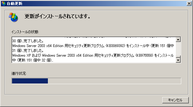 ◆もしかしなくても、初期評価の次は Windows update のお時間です。ここでは更新 151 個