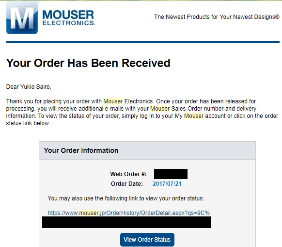3.発注に問題が無ければ登録したメールアドレスへお知らせが届く。インボイスは後日メールで。