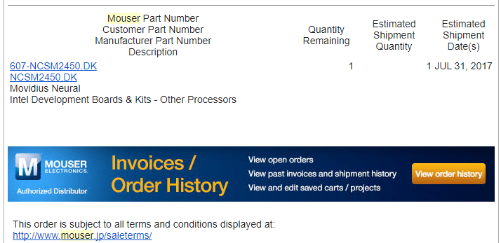 備忘録 Movidius Neural Compute Stick (NCS) 購入