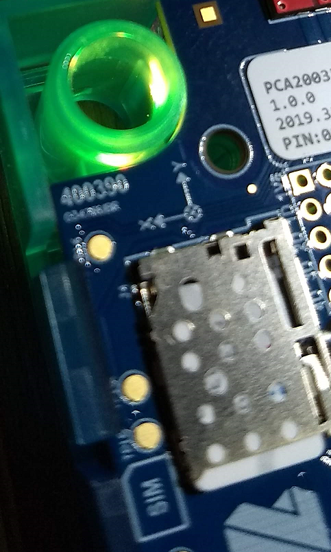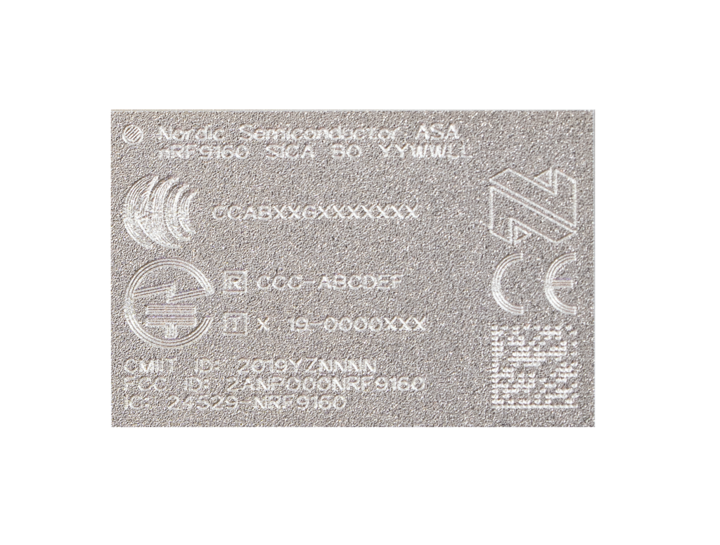 IMEI (イメイ)が nRF9160 シールドにレーザー刻印されず基盤上部にシール貼付。