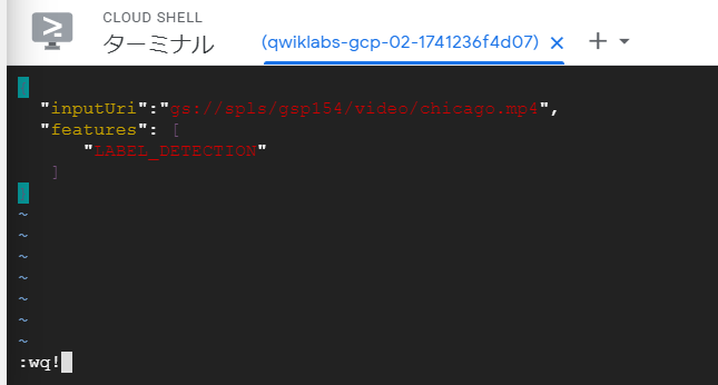 ■アノテーション付き動画のリクエストを行うため、好きな vim を使って request.json  を作成。