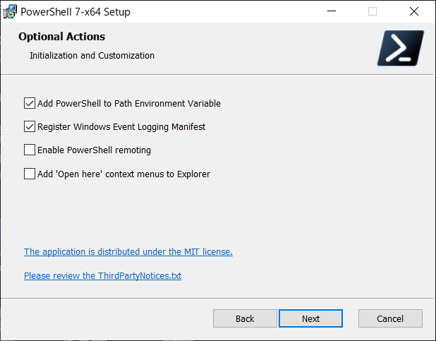 ここでは、https://github.com/PowerShell/PowerShell/releases/download/v7.0.2/PowerShell-7.0.2-win-x64.msi を入手しました。