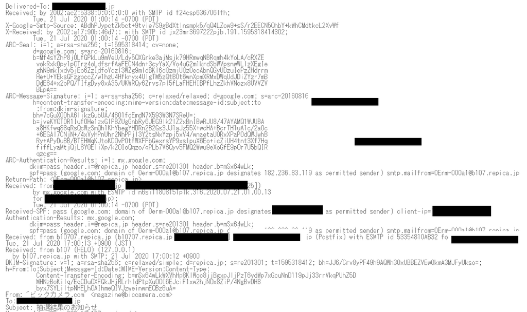 比較対象として、これまでの落選通知と同じ from であることも確認した。