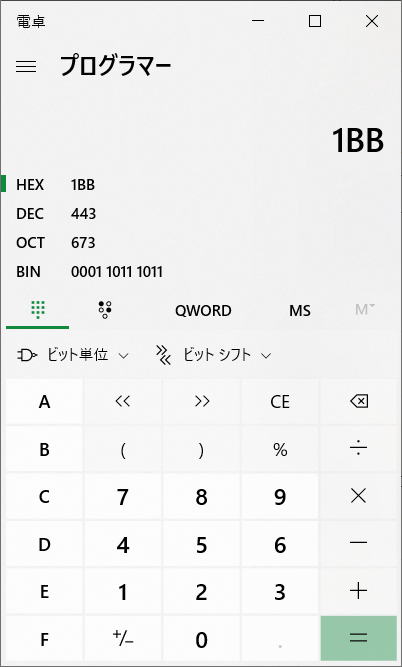 Windows 標準電卓で Hex (16進数)を Dec (10進数)変換してみましょう。