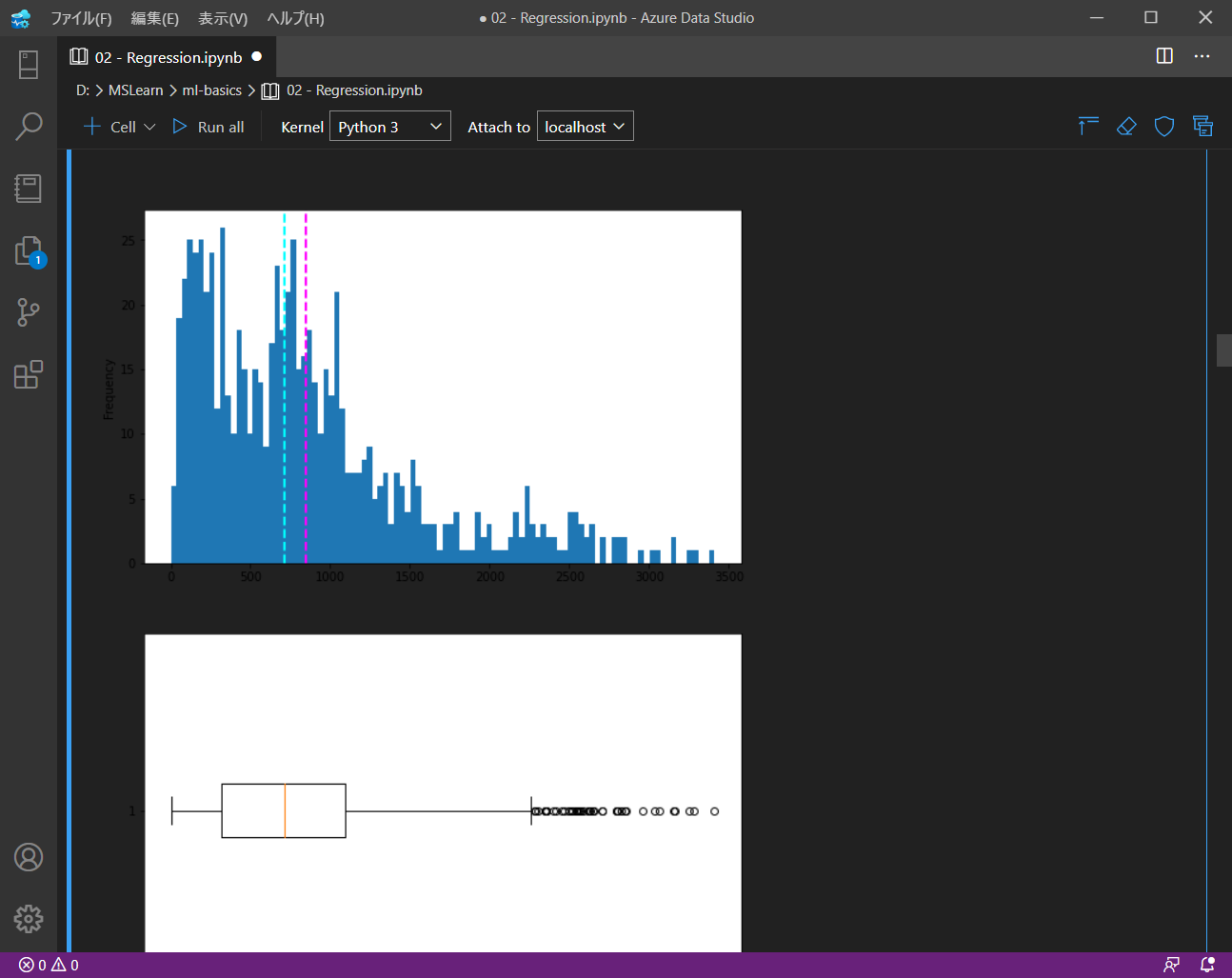 Regression.ipynb ノートブックを VSCode で開きます。