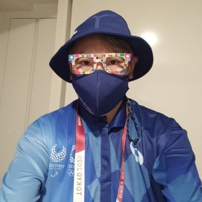 これは東京2020 ボランティアウェアをフル着用している画像です。