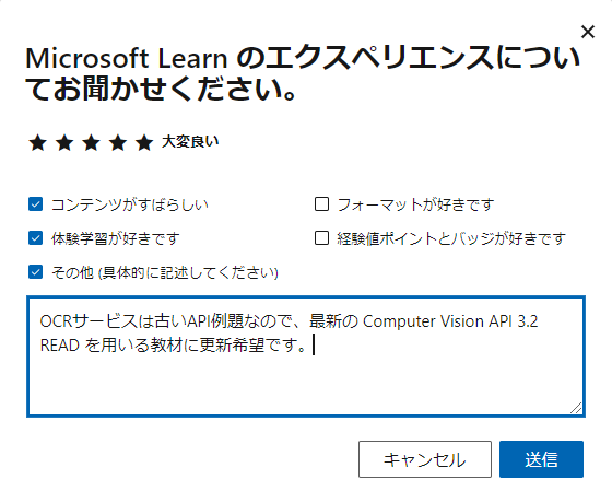 適切な MSLearn アカウントで、https://docs.microsoft.com/ja-jp/learn/modules/create-computer-vision-service-to-classify-images/3-analyze-images サンドボックス上の【アクセス キー】を取得するところまで進みます。