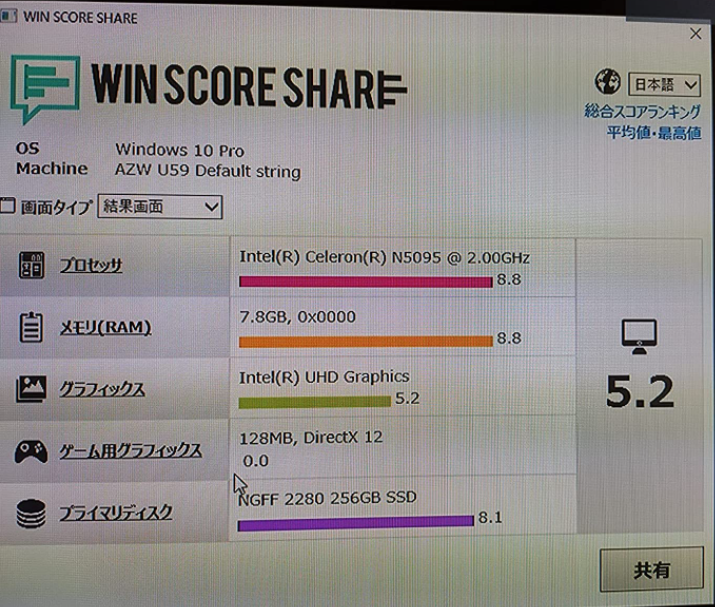 Beelink U59 WinScore (RAM, SSD 換装前)