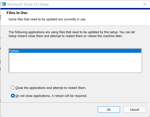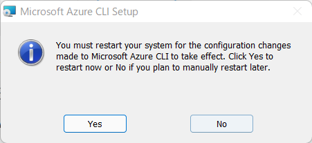Azure CLI に加えられた構成の変更を有効にするためシステムの再起動が促されます。