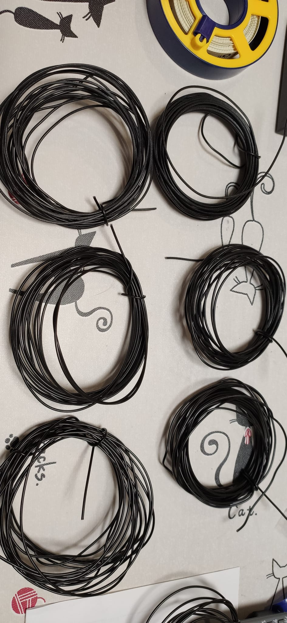 5m ずつ切断し圧着端子側は被膜を剥がし、仮想アース側の末端処理はビニールテープ。