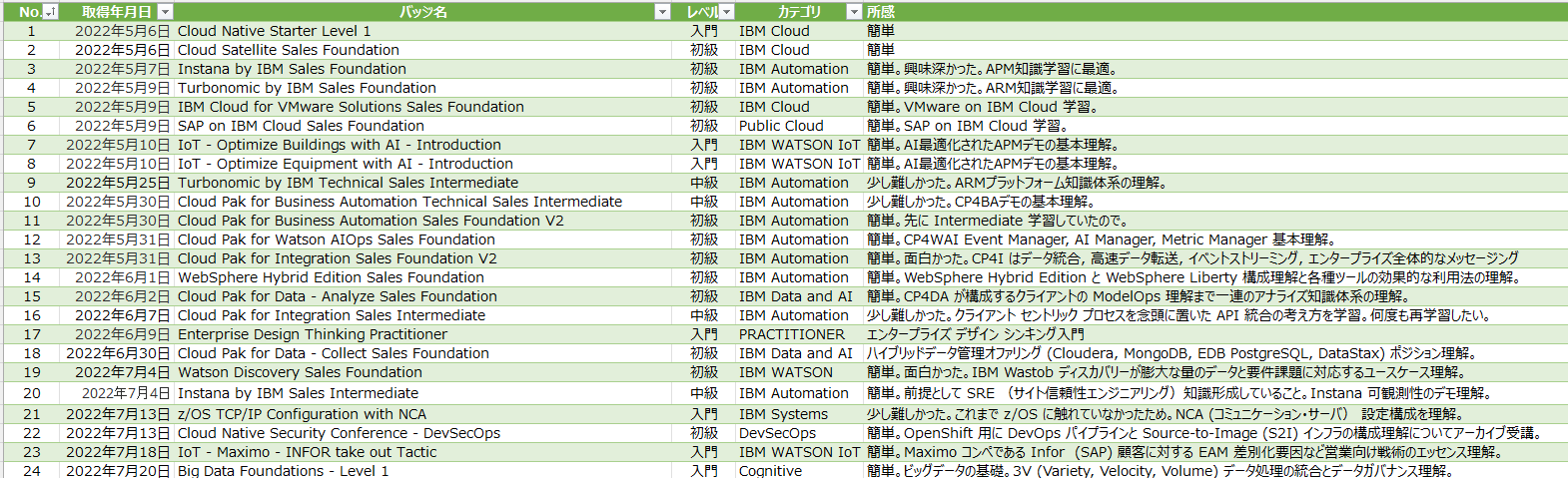 みなさん、こんにちは。私はオンプレミスのフルスタックエンジニア経験がある BP マルチクラウド プリセールス(技術営業)で Azure Solutions Architect Expert, Azure DevOps Engineer Expert 認定を受けています。職場は Microsoft Azure のみならず IBM Cloud を扱っており IBM 認定ディジタルバッジ取得が推奨されていたので 2022年5月大型連休から IBM Training で自習を開始しました。当初は IBM AIOps 技術研修を受講したくて事前に取得要件である科目のみを自習していましたが、学習コンテンツ(主に MP4 動画, PPTX, PDF)では隣接する他の商材紹介が多くあり興味を拡げる内容です。他社 Microsoft Learning は学習ゴールと範囲が明確のため隣接商材へ直接遷移することはありません。予め Well-Architected Framework をもとに学習計画を立てているなら学習の拡がりはあるでしょう。
