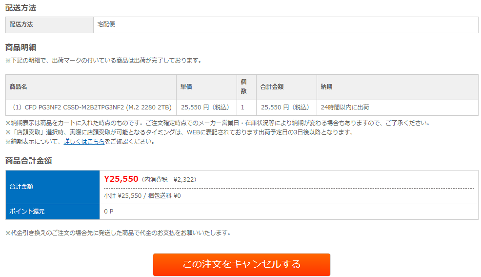ドスパラ通販で購入。 (税込み・送料込み) 25,550 円