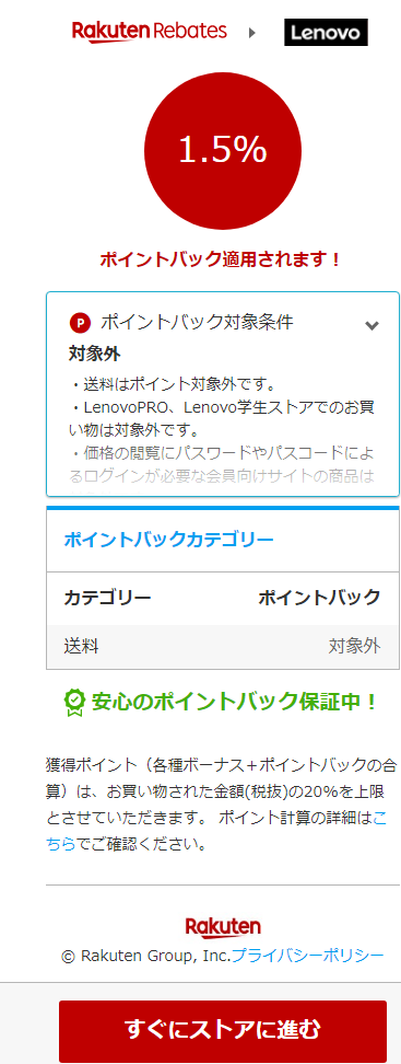会員登録後は 【Rakuten Rebates > Lenovo】を必ず踏んだ先でお買いものをどうぞ。